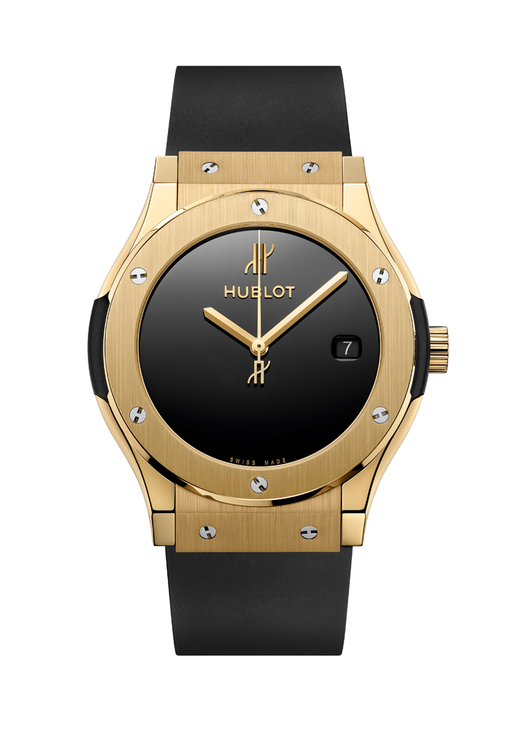 Novi modeli Classic Fusion odražavaju eleganciju i bezvremenu prefinjenost sata Classic Original iz 1980. godine, kao i četiri decenije neprekidnog istraživanja i inovacija. Crni, lakirani i polirani brojčanik je izrazito jednostavan i sadrži samo fasetirane kazaljke, natpis Hublot i logotip H. Kućište od 45 mm, izrađeno od žutog zlata, titanijuma ili crne keramike, ima čuvene vijke na koroni sata i safirno staklo na poleđini kućišta kao i vanvremensku, lako podesivu gumenu narukvicu s trostrukom kopčom za dodatnu udobnost. Ovi prepoznatljivi detalji doprinose modernom izgledu prvog sata kompanije Hublot, dajući ovim modelima prelep, neprolazni karakter.